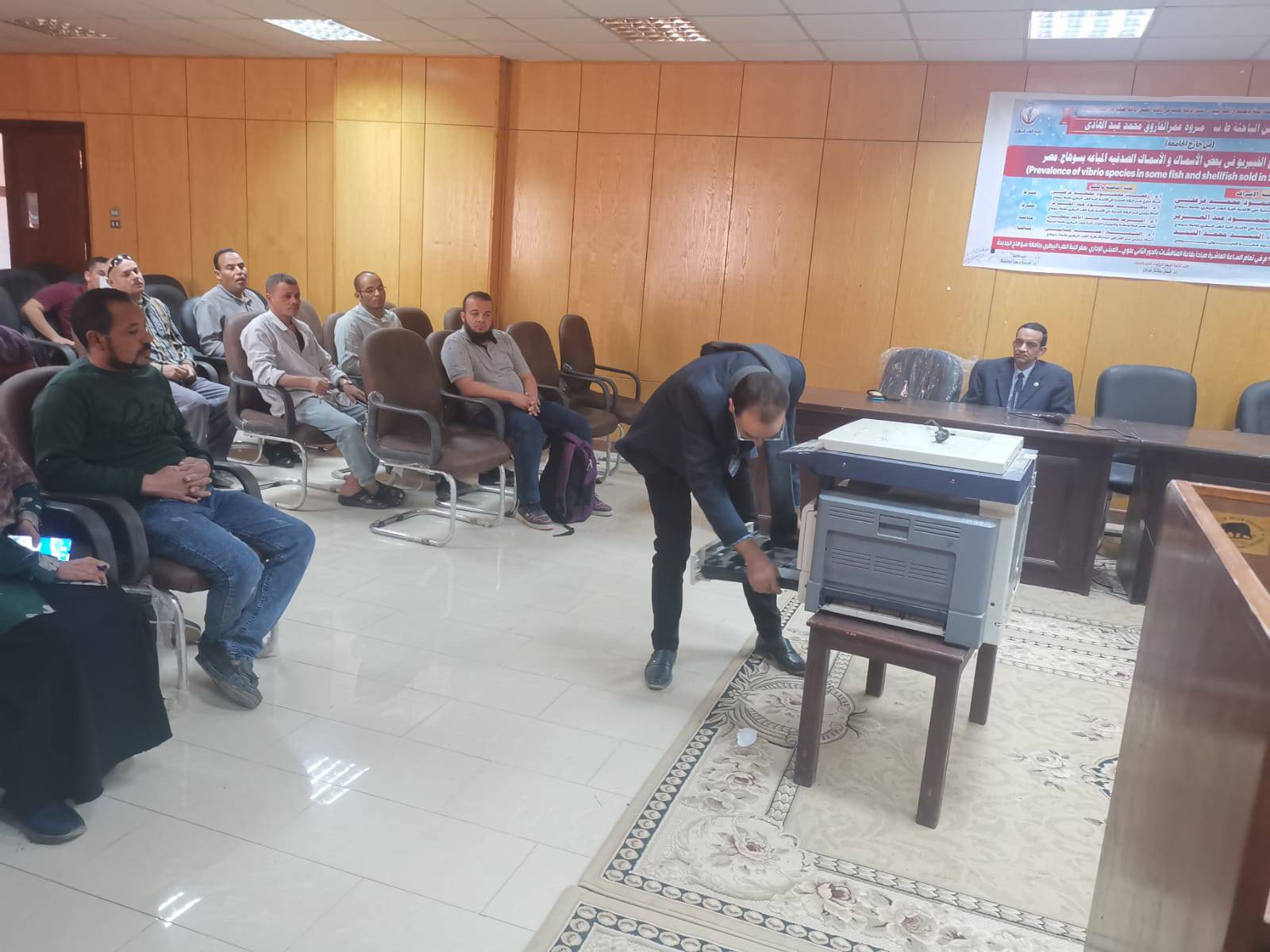 حيث قام مهندسى مركز الخدمة العامة لصيانة الاجهزة العلمية بتدريب عدد 100 موظف من الذين يعملون على ماكينات التصوير والطابعات بكليات الطب البيطرى والالسن والتربية والزراعة من اجل توجيههم بالطرق الصحيحة للتعامل مع تلك الاجهزة.