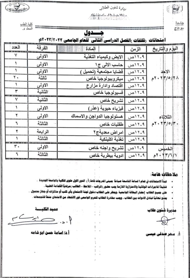 امتحانات تخلفات الفصل الدراسي الثاني