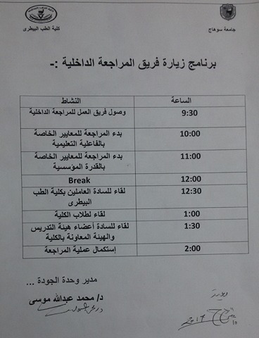 الرئيسية » برنامج زيارة فريق المراجعة الداخلية لوحدة الجودة بالكليةبرنامج زيارة فريق المراجعة الداخلية لوحدة الجودة بالكليةبواسطة manar