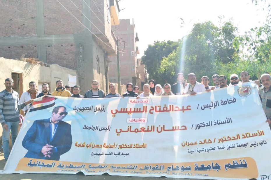 و تأتي هذه القافلة ضمن استمرار مشاركه كليه الطب البيطري بالأنشطة الصحية والمجتمعية لجامعة سوهاج في إطار تنفيذ المبادرة الرئاسية لقري حياه كريمه تحت رعاية فخامة الرئيس عبد الفتاح السيسي رئيس الجمهورية.