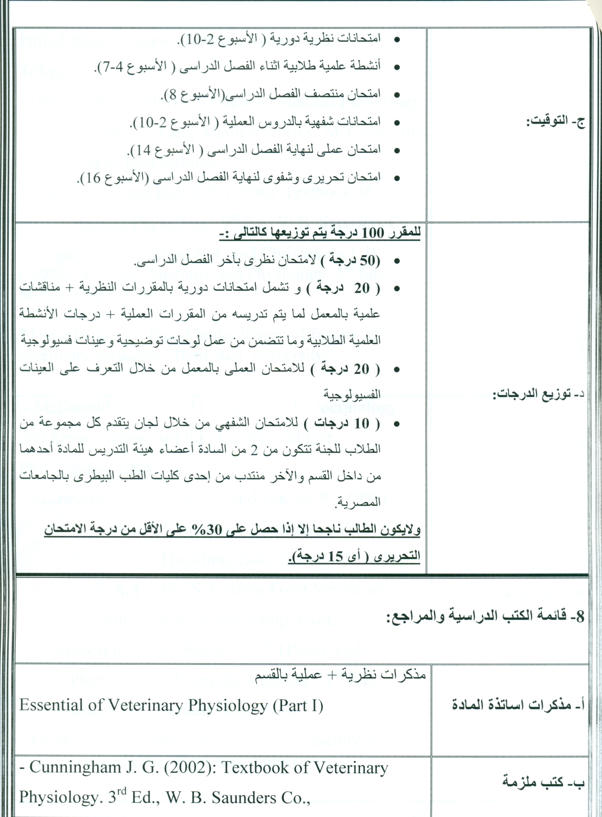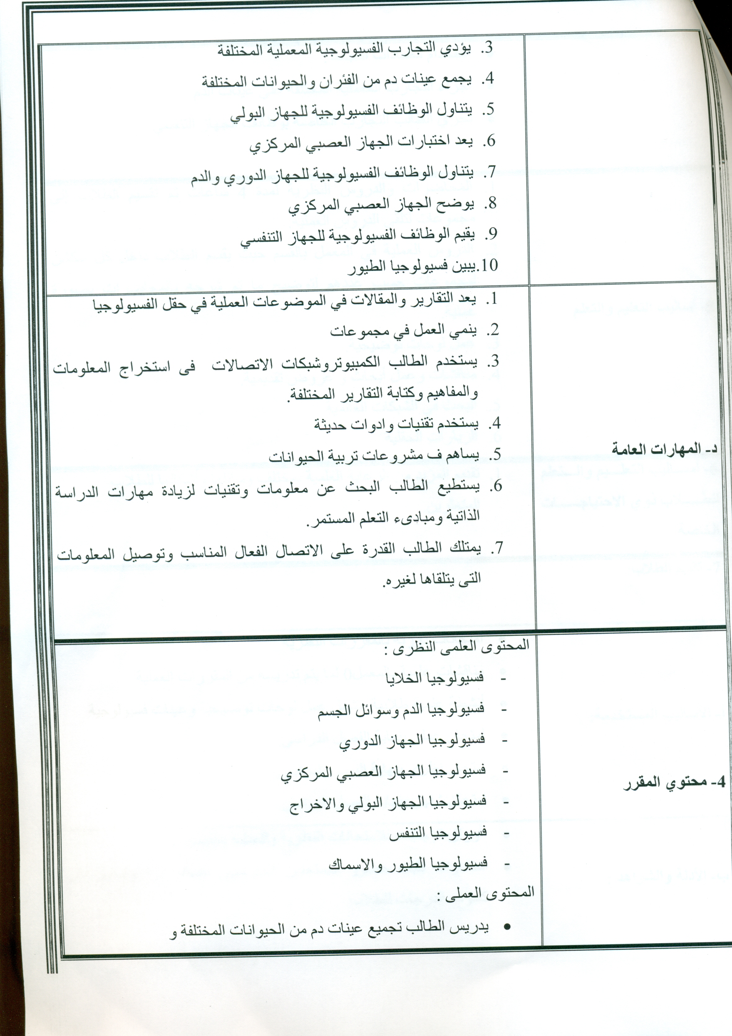 توصيف المقرر الدراسى للفسيولوجيا العام وهى كالتالى فى الصور المرفقة: