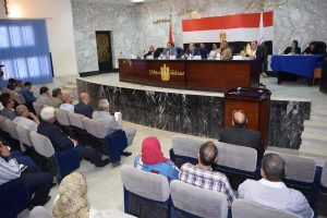 وقال عزيز في كلمته أنه ايمانا من الجامعة بأهمية المركز وتناسبه مع التوجهات الحالية للدولة نحو تطوير وتنمية قدرات قيادات الإدارة المحلية بكفاءة، ومن منطلق مشاركة الجامعة بشكل فعال في إحداث هذا التطوير لدعم عجلة التنمية، لذا فإن الجامعة بصدد انشاء هذا المركز والذي يهدف إلى الإسهام في توفير الاحتياجات المرتقبة من الكوادر البشرية المؤهلة للعمل بالإدارة المحلية وكذلك تطوير قدرات القيادات الحالية في شتى المجالات القانونية، الفنية، الإدارية وما يتعلق برفع جودة الأداء لقطاعات الإدارة المحلية.