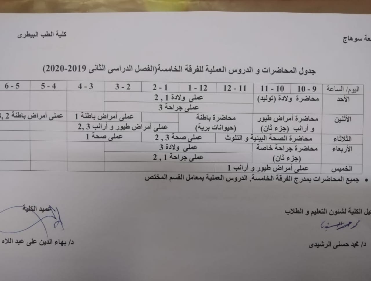 جدول الفرقة الخامسة 2020