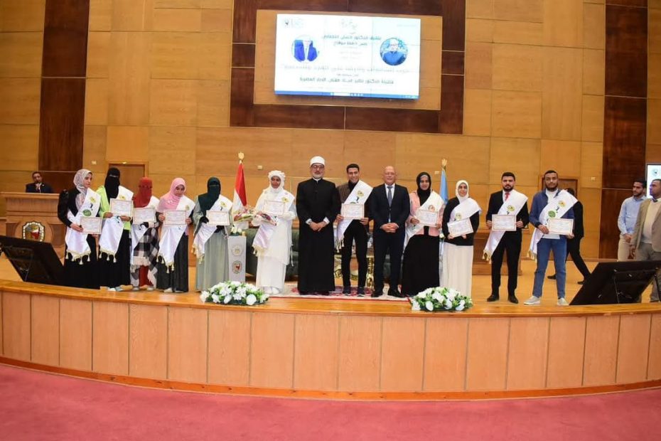 كرم الدكتور حسان النعماني رئيس جامعة سوهاج فضيلة الدكتور نظير عياد مفتي الديار المصرية الطلاب أبناء الجامعة من حفظة القرآن الكريم، وذلك تقديراً لهم على الإجتهاد في حفظه وتشجيعهم على بذل المزيد ليكونوا مثالاً يحتذى به، في الأخلاق والإلتزام بالقيم والسلوك الحميد.