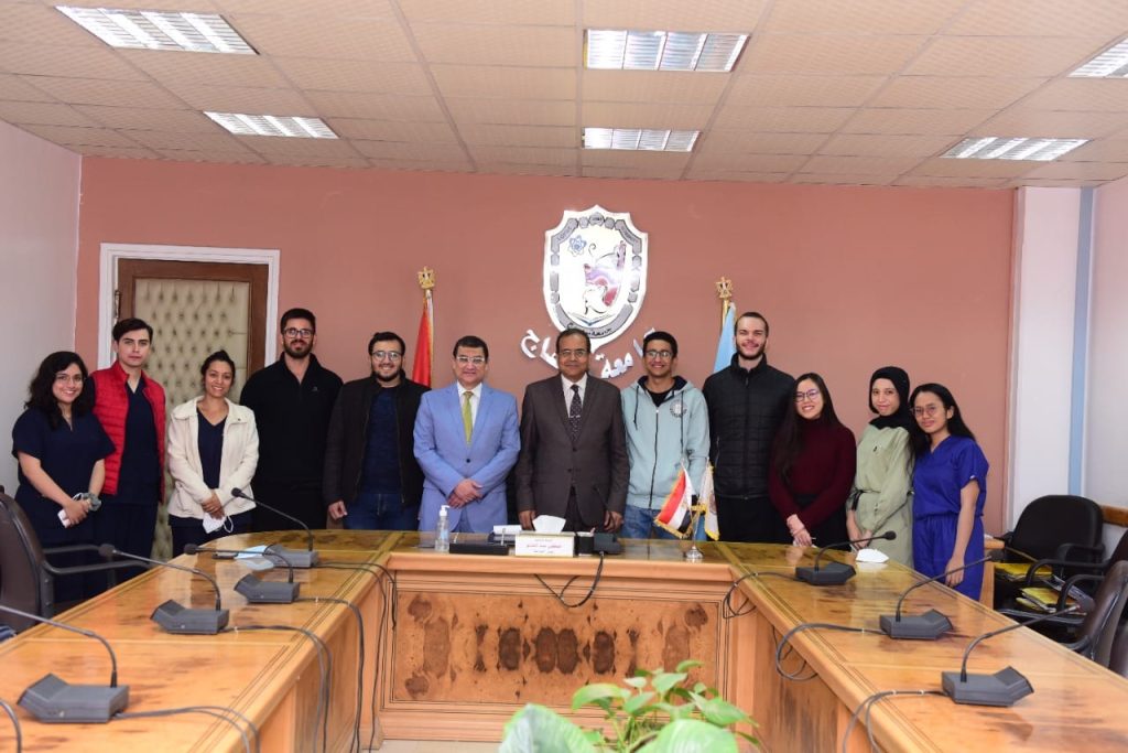 رئيس جامعة سوهاج يجتمع بالطلاب الوافدين لكلية الطب في إطار التبادل العلمي للجمعية العلمية