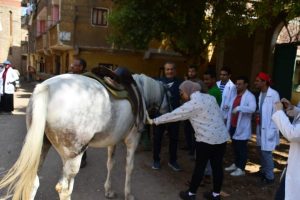 وضمت القافلة فرق علاجية في مختلف التخصصات الاكلينيكية (الجراحة البيطرية – الولادة وأمراض نقص الخصوبة – الأمراض الباطنة والأمراض المعدية – أمراض الدواجن) وقام الأطباء باستقبال ومناظرة الحالات المرضية وعددهم (٦٥٥) حالة في العيادات وصرف العلاج لها, وقد أدت القافلة دور وقائي للحيوانات الغير مريضة من خلال مكافحة الطفيليات الخارجية عن طريق الرش بالمبيدات الحشرية والطفيليات الداخلية بتجريع مضادات الديدان لكل الحالات المترددة كما تم إجراء العمليات الجراحية من قبل الأساتذة المتخصصون وعلاج حالات العقم وتأخر الولادات وشارك فى القافلة عدد ١٢ من اعضاء هيئة تدريس وهيئة معاونة بالكلية، وعدد ٣٥ طالب من الفرقة الرابعة والخامسة بالكلية.