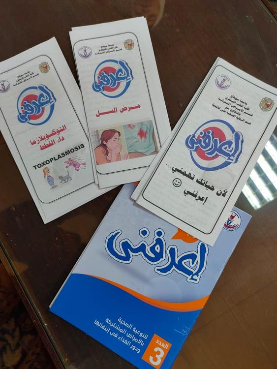 حملة توعوية ميدانية لطلاب الجامعة تحت عنوان ,,اعرفنى، من خلال فرق ميدانية تجوب كليات الجامعه للتوعية بالامراض المشتركة ودور الغذاء فى انتقالها