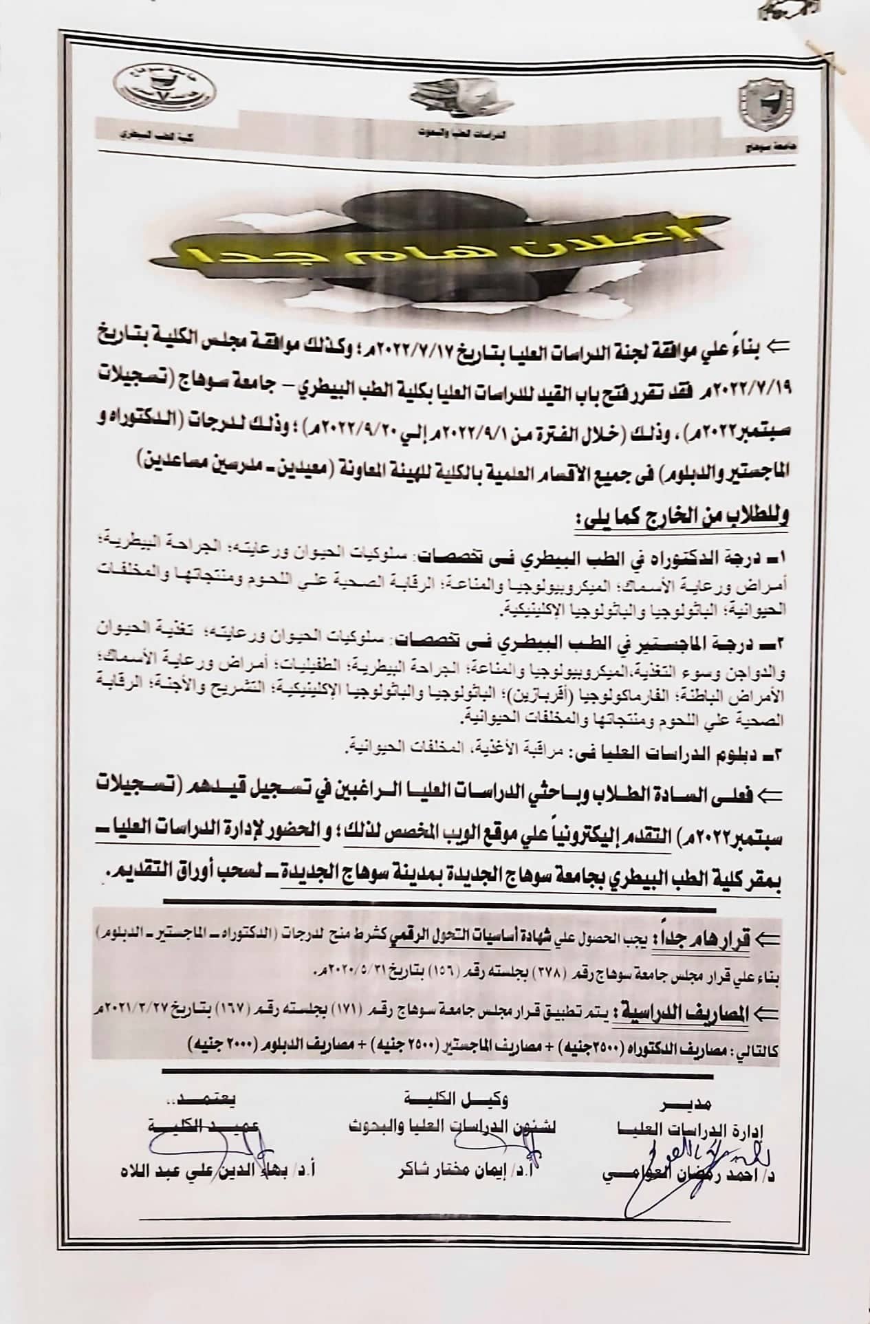 فتح القيد للدراسات العليا سبتمبر2022م من يوم 1 الي يوم 20 سبتمبر 2022م