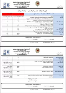 وحصلت كلاً من مجلة الدراسات الهندسية التي تصدر عن كلية الهندسة، ومجلة علوم وفنون التربية البدنية والرياضية التي تصدر عن كلية التربيه الرياضية، ومجلة Egption Jornal of Lingustics and Translation
