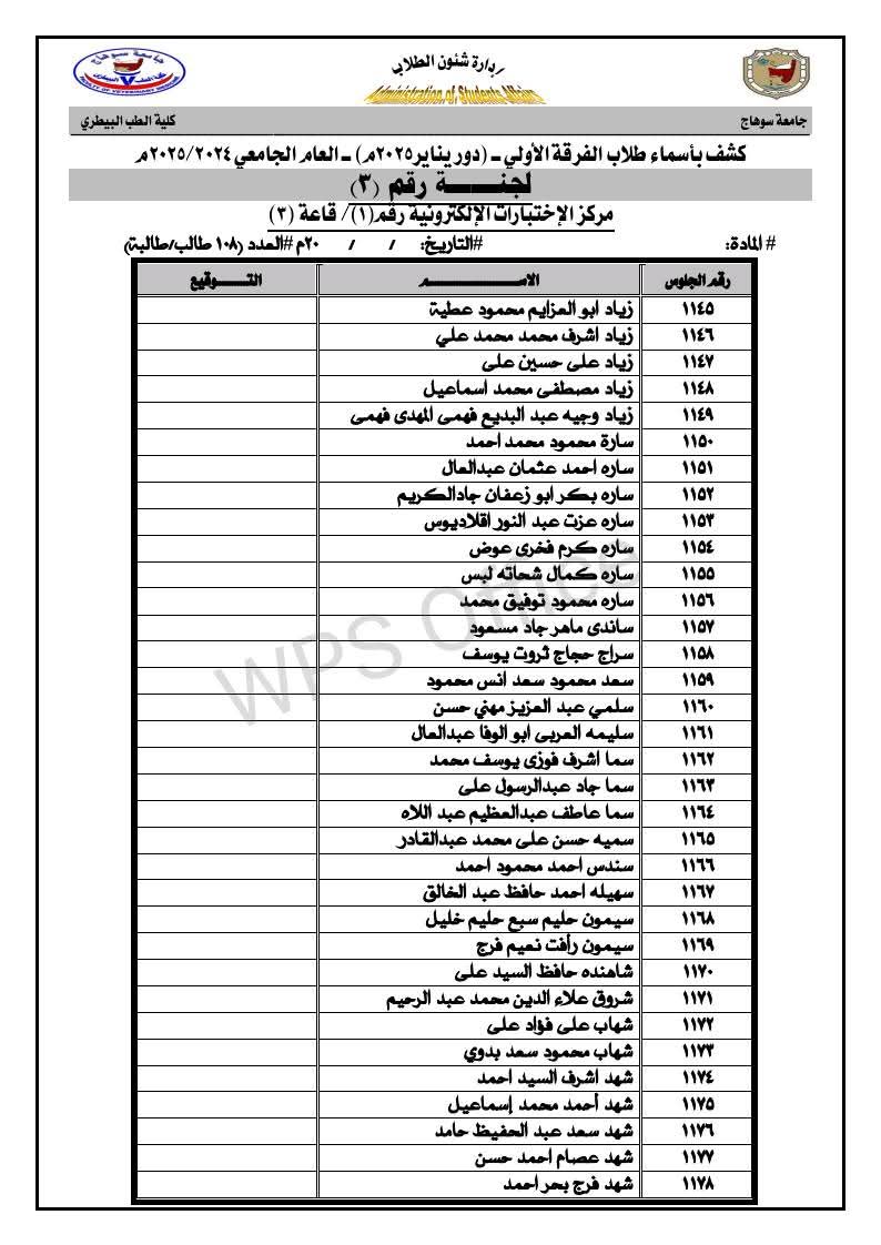 الرئيسية » قوائم لجان الإمتحانات بأسماء وأرقام جلوس طلاب الفرقة الدراسية الأولى بكلية الطب البيطري لإمتحانات الترم الأول (يناير2025م)قوائم لجان الإمتحانات بأسماء وأرقام جلوس طلاب الفرقة الدراسية الأولى بكلية الطب البيطري لإمتحانات الترم الأول (يناير2025م)بواسطة manar