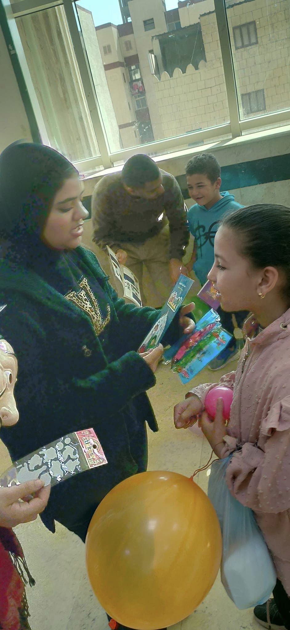 حيث قام بالزيارة وفد من طلاب الكلية وعددهم ٢٥ طالب وطالبة يرافقهم مدير رعاية الشباب الدكتور/ حسين عزت والاستاذ/ اسلام حسن الاخصائي الاجتماعى بالكلية وتضمنت الزيارة تقديم فقرات ترفيهية شملت أطفال المستشفى بجانب عدد من الألعاب الترويحية وتوزيع جوائز وهدايا للأطفال بالمستشفى