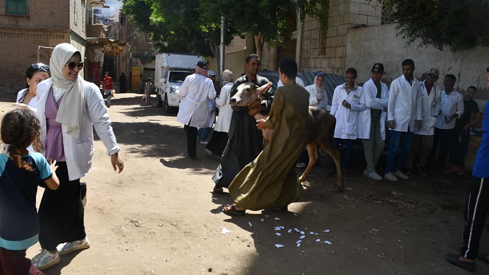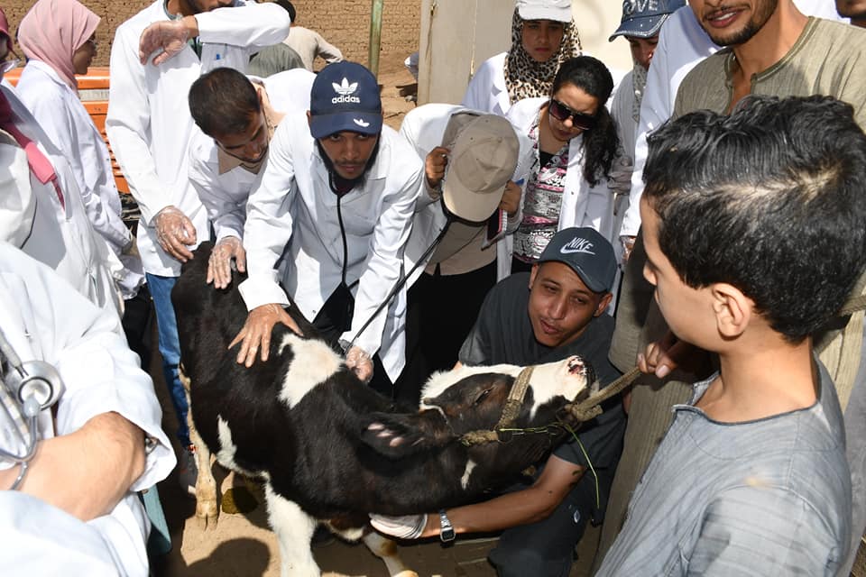 نظمت كليه الطب البيطري بجامعه سوهاج قافله بيطرية اليوم الخميس بقريه المحامده ب