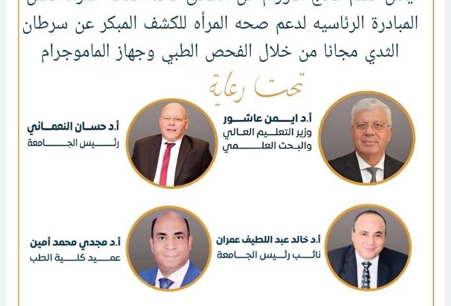 تحت شعار “١٠٠ يوم رياضة” كلية الطب البيطرى تنظم مركز تدريب اللياقة البدنية، ضمن فعاليات المبادرة الرئاسية “بداية” جديدة لبناء الإنسان والتى أطلقها فخامة رئيس الجمهورية عبد الفتاح السيسى تحت رعاية الاستاذ الدكتور/ حسان النعماني رئيس الجامعة و الاستاذ الدكتور/ عبد الناصر يس نائب رئيس… اقرأ المزيد »تحت شعار “١٠٠ يوم رياضة” كلية الطب البيطرى تنظم مركز تدريب اللياقة البدنية، ضمن فعاليات المبادرة الرئاسية “بداية” جديدة لبناء الإنسان والتى أطلقها فخامة رئيس الجمهورية عبد الفتاح السيسى