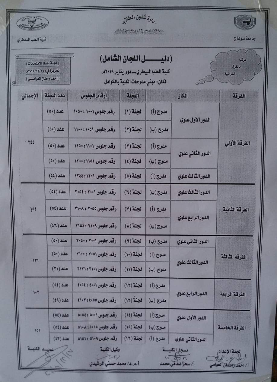 دليل لجان الامتحانات التحريرية لدور يناير 2018-2019
