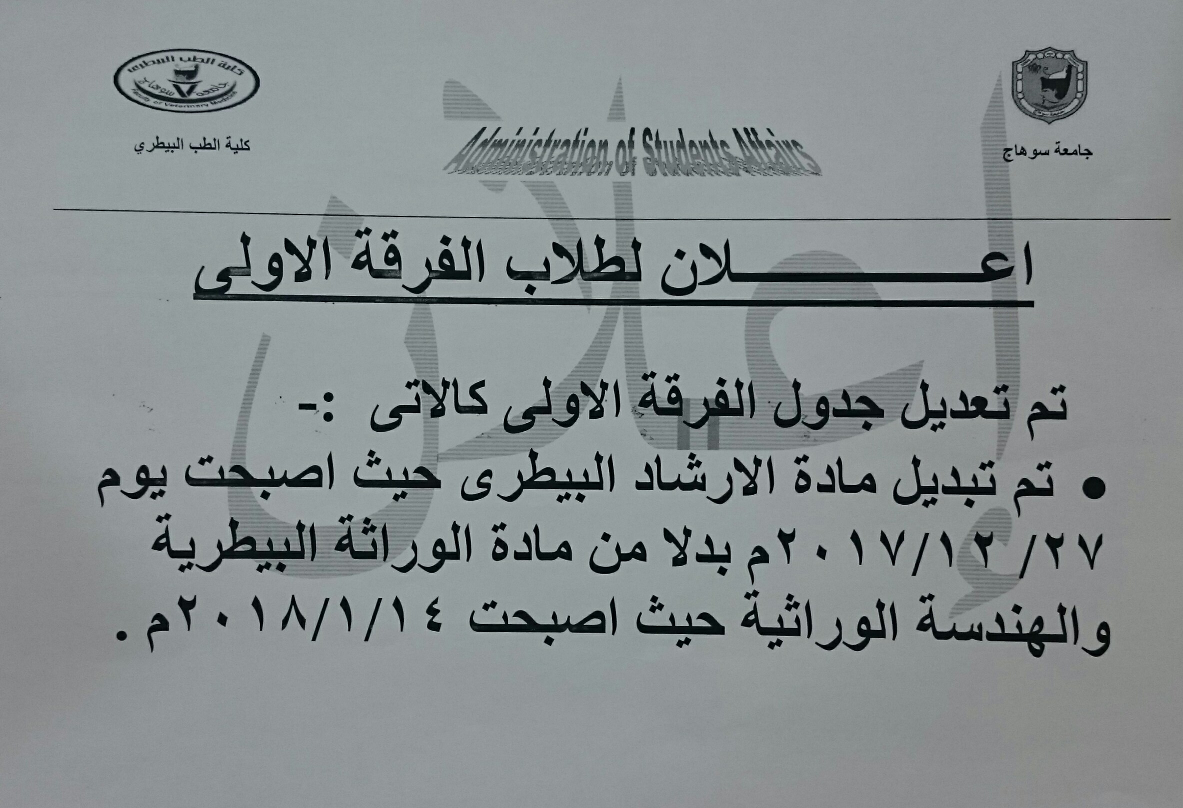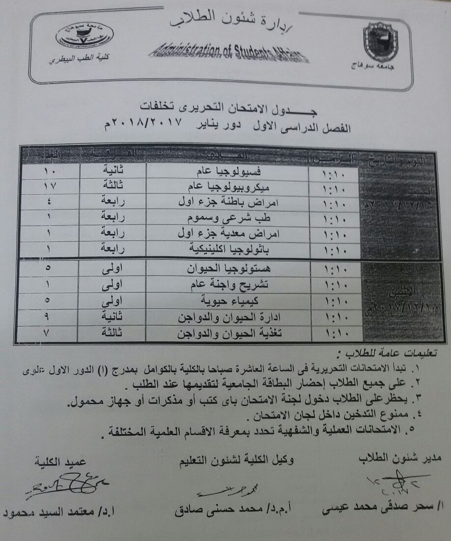 تحت رعاية الأستاذ الدكتور/ معتمد السيد محمود عميد الكلية والاستاذ الدكتور/ محمد حسني الرشيدي وكيل الكلية لشئون التعليم والطلاب جاري تجهيز قاعات الدرس للإمتحانات بكلية الطب البيطري
