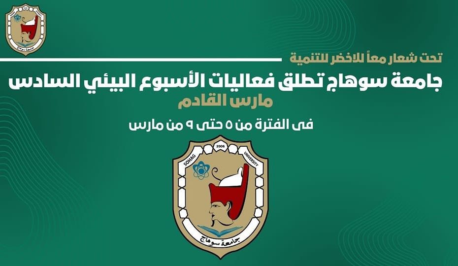 تحت شعار “معاً للاخضر للتنمية”جامعة سوهاج تطلق فعاليات الأسبوع البيئي السادس مارس القادم