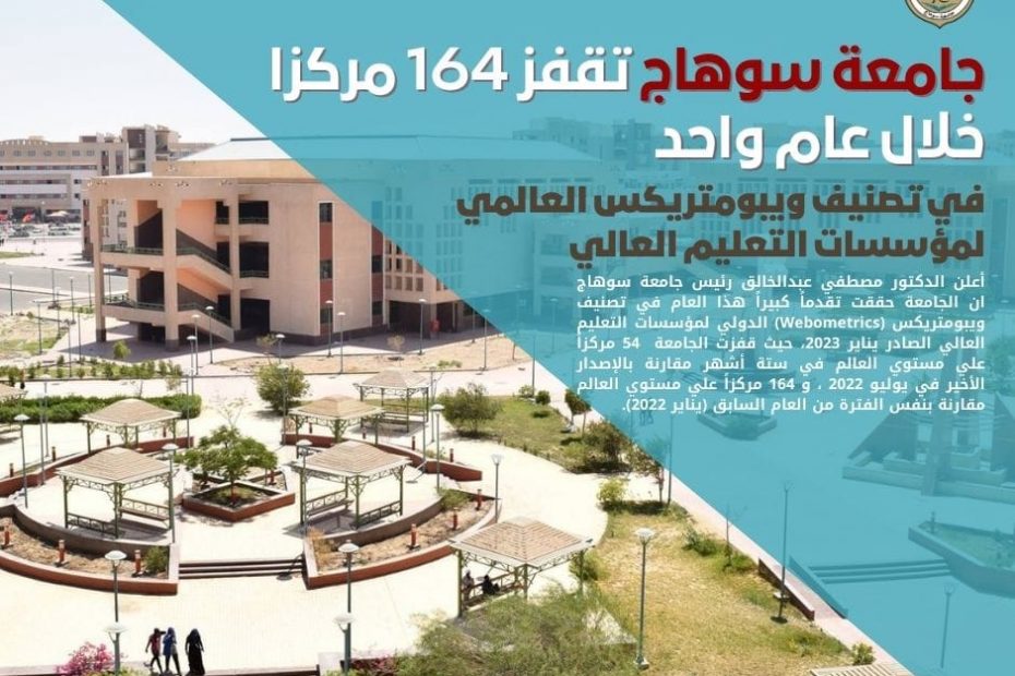 جامعة سوهاج تقفز 164 مركزاُ خلال عام واحد في تصنيف ويبومتريكس العالمي لمؤسسات التعليم العالي