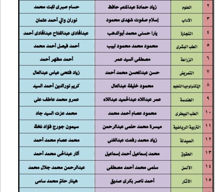 *جامعة سوهاج تعلن أسماء رؤساء اتحاد الطلاب ونوابهم داخل ١٧ كلية*